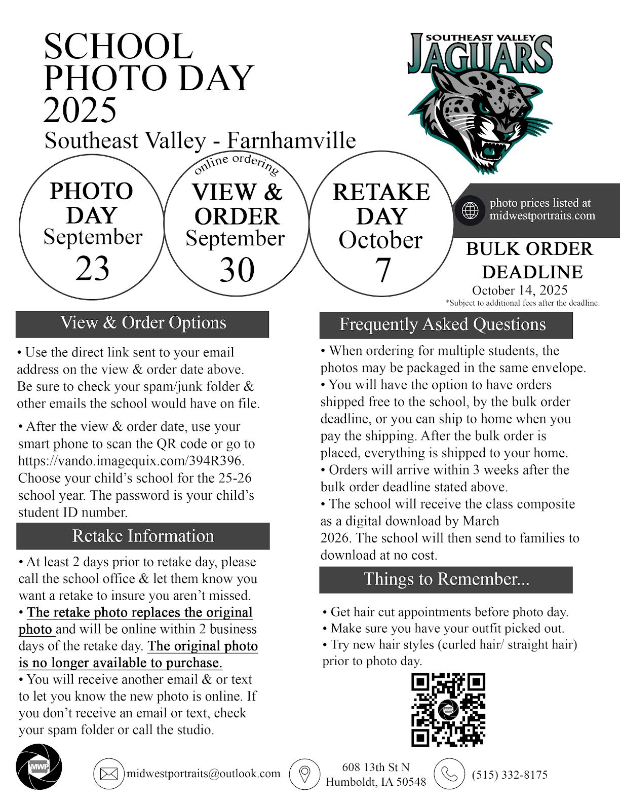 School Pictures - View & Order Online thru Midwest Portraits starting September 30, 2025